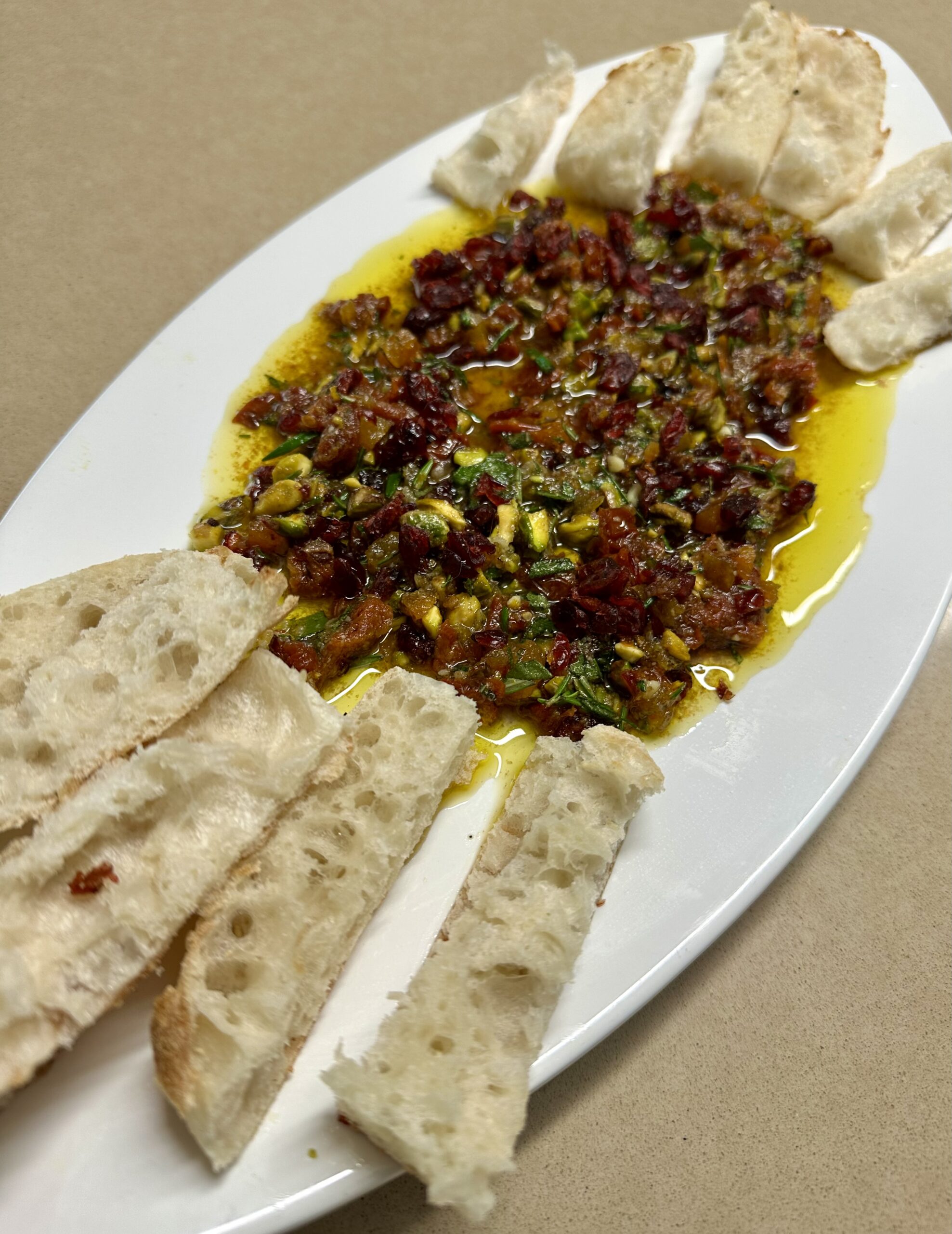 Warm crusty bread such as focaccia (photo shows toasted Turkish bread)